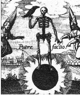 炼金术的过程,就是使炼金物质死亡,然后再获得重生。这种死亡的图像可以在许多炼金术文字作品中发现。这些图像大多受影响于1622年的《哲学改革》(Philoso-phiaReformata),这里,死亡被形象化成一个骷髅,站在一个已被烧的发黑的炼金术容器上,骷髅手中的黑乌鸦同样也象征着黑化过程。在凯尔特神话中,掌管死亡的女人摩格纳也有一只类似的黑乌鸦伴随。在炼金术塔罗牌里的死神它手持一支箭,箭是中世纪象征死亡的符号,这里取代了传统塔罗牌死神里的镰刀。(完)