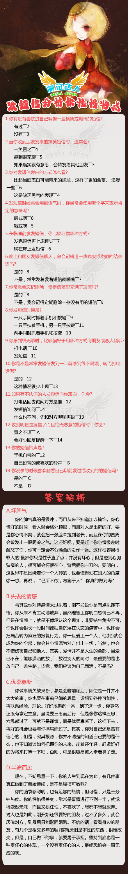 短信测试你性格特点