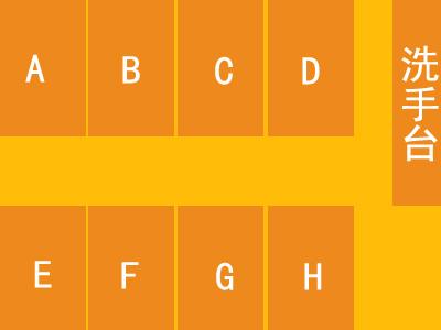 题目:你要去一个布局如下图的公共卫生间,里面没有一个人,那么凭直觉你会选择去哪个小间方便呢?